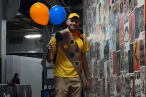 有点可爱!克林根打扮成《飞屋环游记》 中的罗素并牵着狗入场!