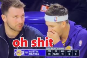 东契奇向里夫斯展示扭伤的手指 里夫斯不敢相信脱口而出Oh Shit!