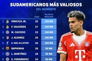 南美球员德转身价榜:维尼修斯1.5亿欧居首,巴尔韦德1.3亿欧次席