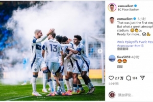 点射破门!穆勒社媒庆祝季后赛首胜:这只是第一步