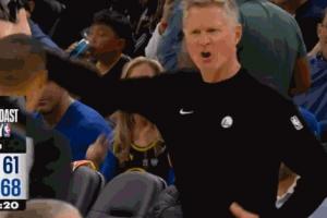 库里转换上篮打停快船 科尔非常不满向裁判示意这球拽手臂了