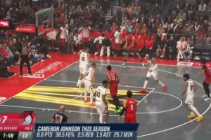 开场就有!阿夫迪亚底角命中三分&开拓者首个进球