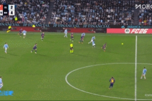 可惜啊!费尔明前场压迫对方中卫抢出机会,亚马尔单刀打门中柱