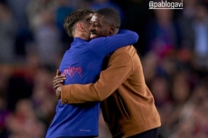 登贝莱社媒晒出与加维拥抱的照片,配文:“加油小兄弟!希望你早日康复,这样我就能再次看到你在球场上尽情享受比赛!”