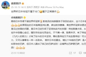 体育资讯10月15日讯 昨日的麒麟杯,日本主场让二追三逆转击败巴西。今日,前国脚高雷雷发文再次谈到日本足球。