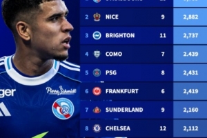 体育资讯10月17日讯 德国转会市场盘点了本赛季五大联赛各俱乐部U21球员上场时间情况,斯特拉斯堡以5785分钟高居榜首,布莱顿以2737分钟位居第三。