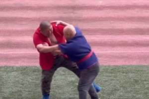 硬碰硬!泰山vs海港赛前进行了暖场节目——摔跤