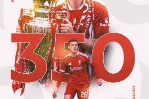 罗伯逊达成利物浦生涯350次出场里程碑,贡献12球68助攻