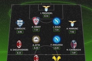 whoscored本轮意甲最佳阵:莱奥、安古伊萨领衔,萨56在列