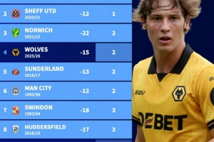 3、诺维奇21/22赛季,2分,-22球(降级)