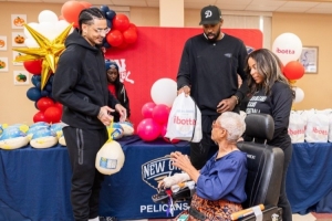 临近感恩节!小乔丹&皮维代表鹈鹕回馈社区 给居民送火鸡等食材