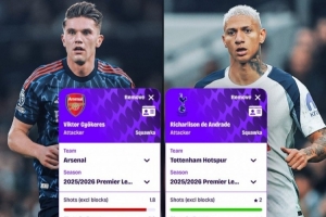 即将对决!英超关键数据对比:约克雷斯仅禁区内触球多于里沙利松