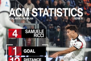斩获首球!米兰官方晒里奇数据:跑动距离12公里,传球成功率97%