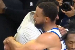聊了点啥?库里赛后和哈利伯顿拥抱寒暄 后者喜笑颜开