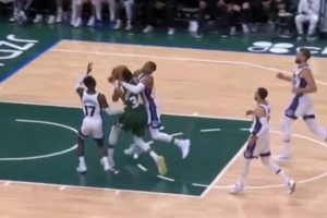 凶悍拦截!字母哥快攻中被威少直接暴力拉抱 裁判没有升级判罚