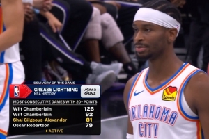 如日中天!亚历山大连续82场得分20+ 直追张伯伦