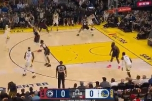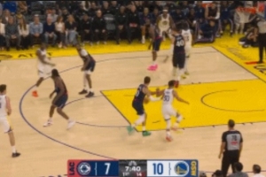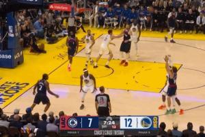😲追梦真传?!库明加弧顶潇洒击地妙传助库里轻松上篮