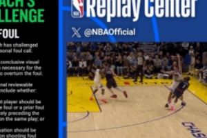 哈登造波斯特三分犯规 勇士果断选择挑战并成功 改为中圈争球