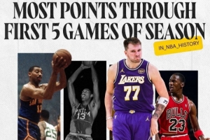 传奇阵营!湖人晒东契奇海报:前五场总得分200分 仅次于张伯伦