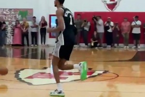 🤯这让人咋玩!文班防守左手摘帽+快攻一条龙上篮打板上进!