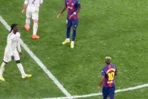 国家德比名场面🖻维尼修斯社媒晒图,佩德里铆足劲儿拉他球衣