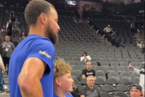 库里为小球迷的晚安假肢签名 小球迷称库里是他最喜欢的球员