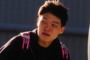 随队出发湾区!刘海被风吹开的杨瀚森 棱角分明的脸有种复古的帅